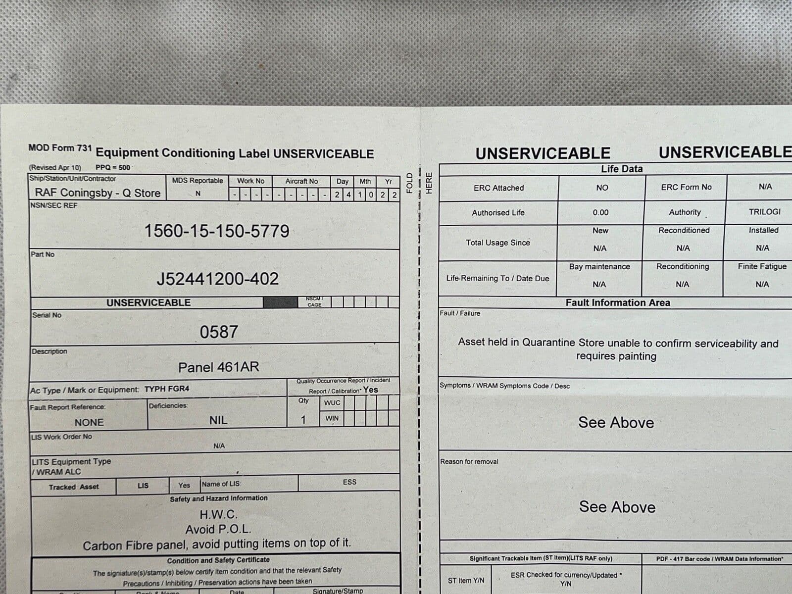 Eurofighter Typhoon FGR4 Aircraft 461AR Cover Access Panel [PL15]