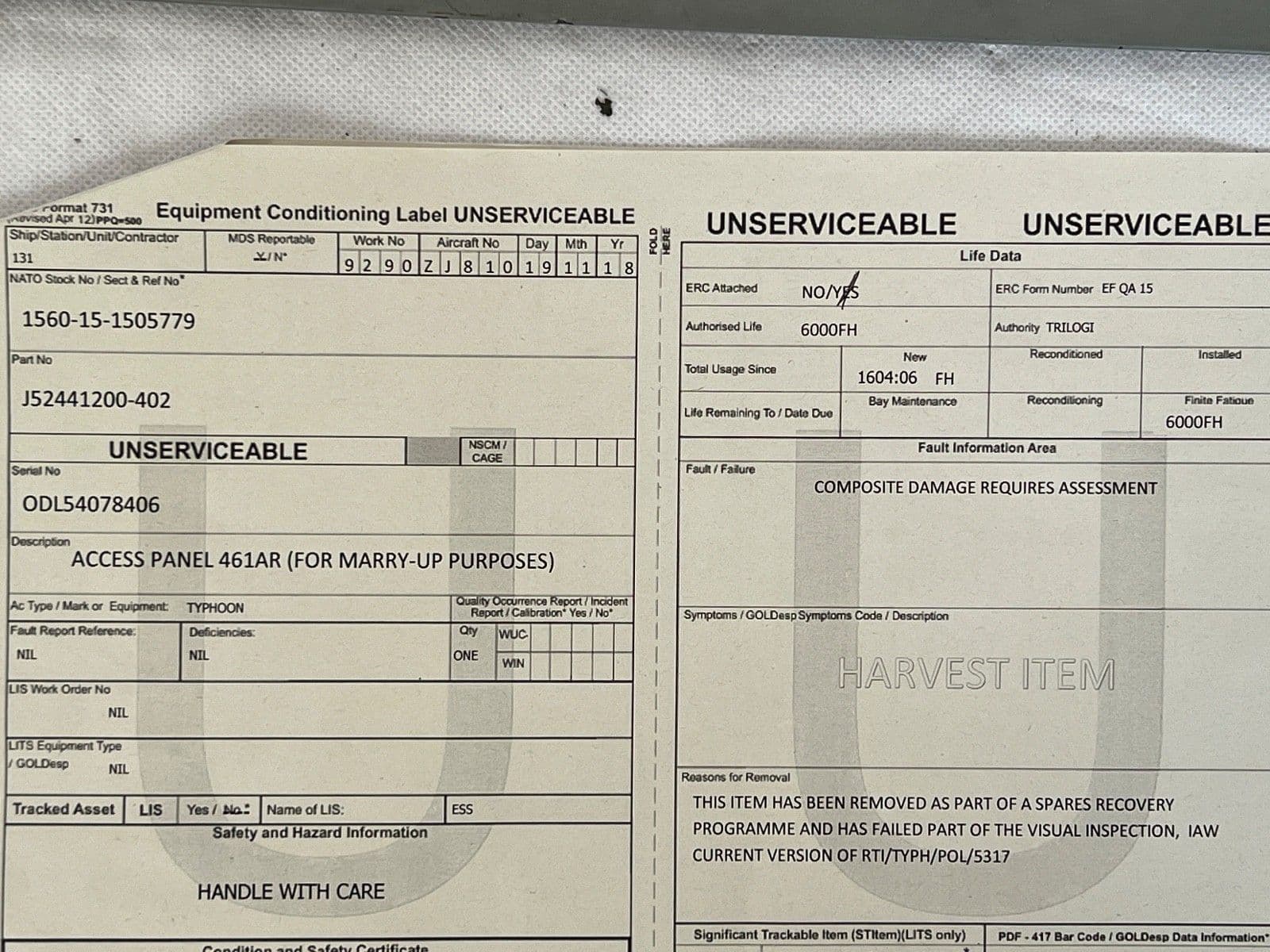 Eurofighter Typhoon R/H Aircraft 461AR Cover Access Panel From ZJ810 [PL18]