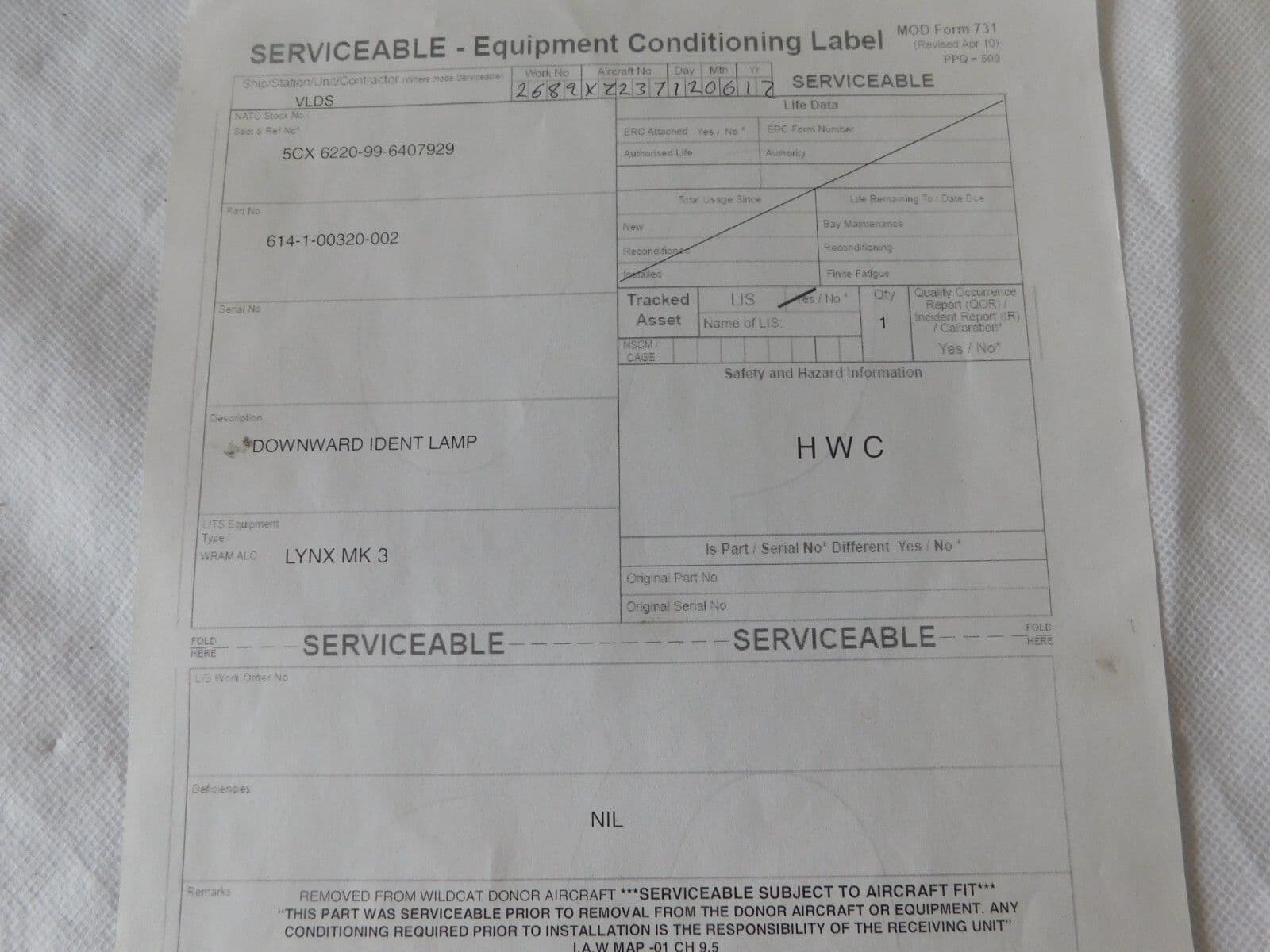 Lynx MK3 Helicopter Downward Landing Lamp, From XZ237 [PL5]