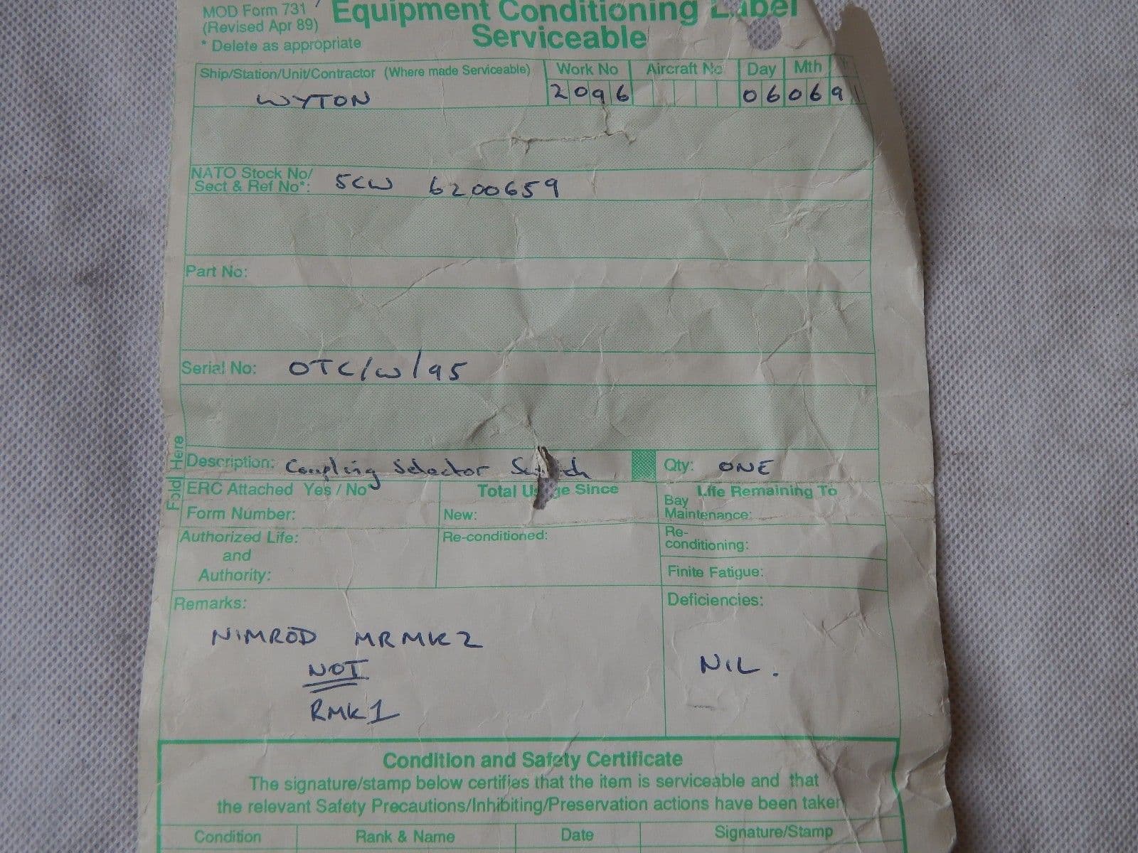 Nimrod AFCS Coupling Selector Switch P/N 6M4N8789A1 [1R8E]