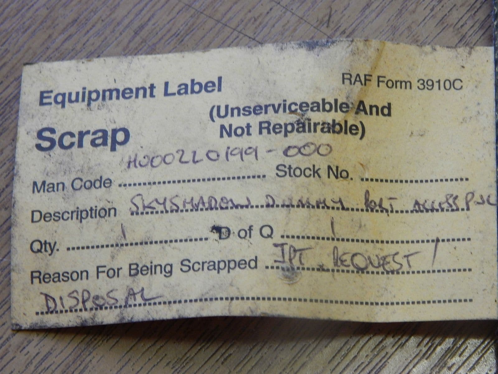 Tornado Aircraft Sky Shadow Dummy Port Access Panel Part HU002L0199-000 [1R1E]