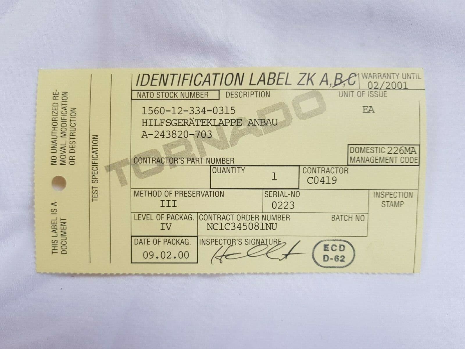 Tornado F3 Aircraft L270 Access Door Part No A-243820. New [GR2A]