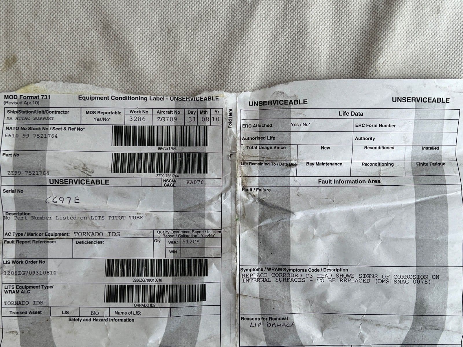 Tornado GR4 Aircraft Pitot Tube From ZD709 [D5D]